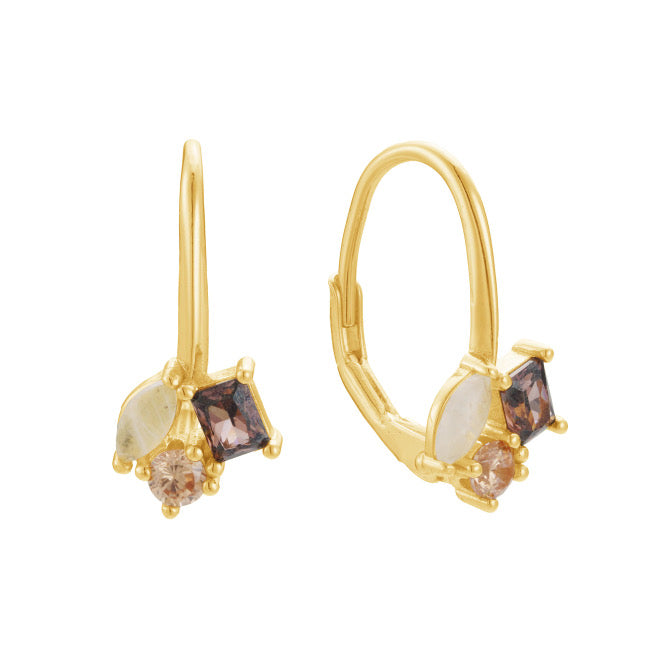 A gentle cascade of café and espresso-toned crystals meets luminous moonstone in these delicate, storybook earrings.